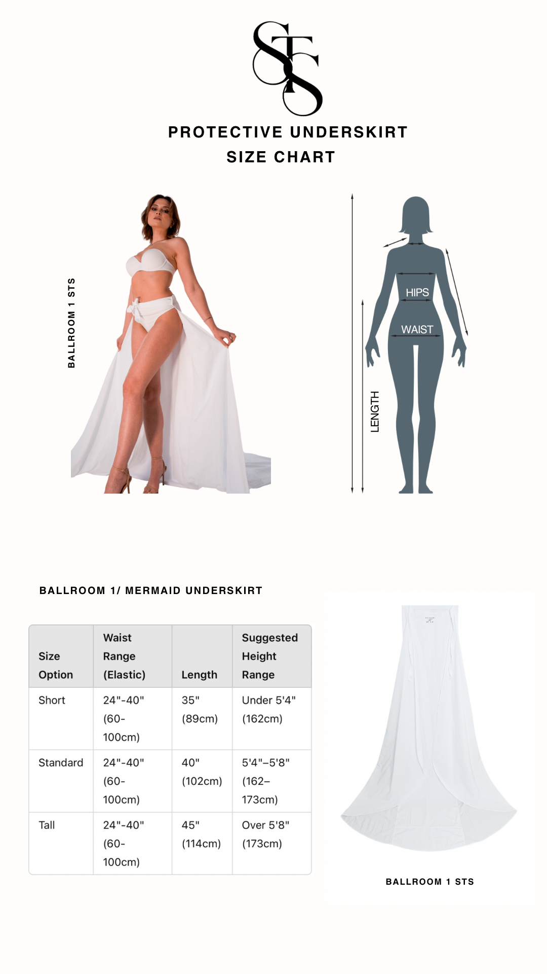 Our Protective Underskirts are designed with an elasticated waist to comfortably fit a wide range of body shapes.To choose the correct size, focus on length and height, not dress size.All sizes feature:Adjustable elastic waist (24”–40” / 60–100cm)Lightweight, flexible fabricComfortable fit for all-day wear
